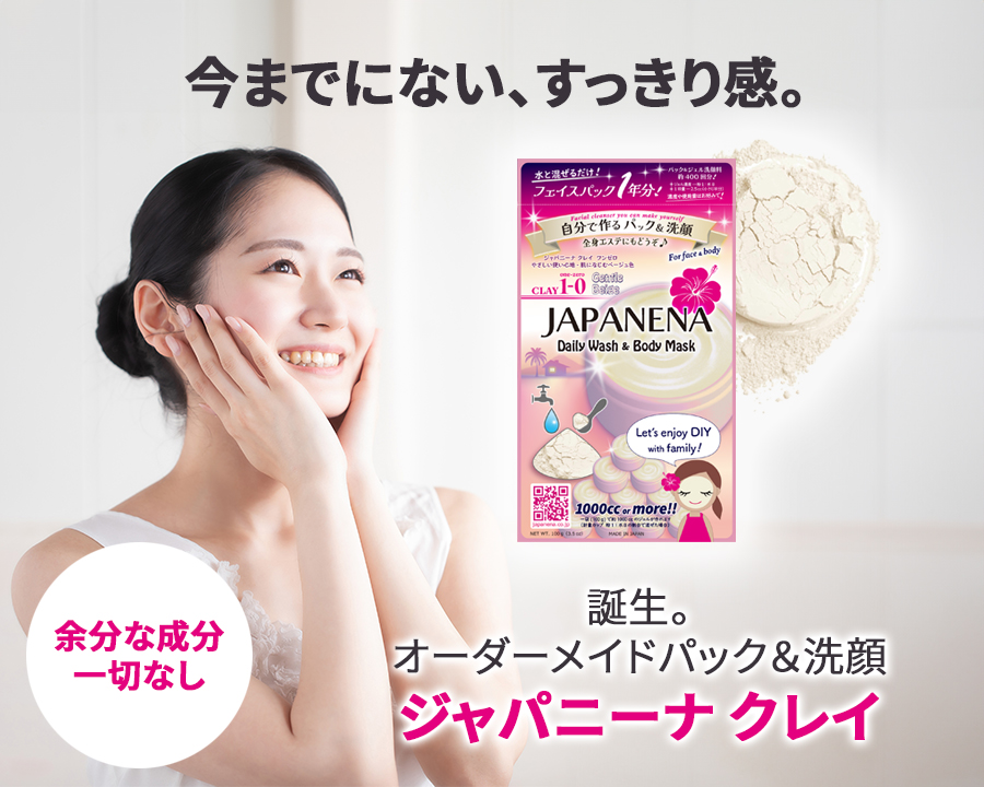 「ジャパニーナ クレイ」は、伝統的なクレイ(泥)スキンケアの考えをベースに、日本国内で精製された高品質ベントナイト100%で作られた商品です。