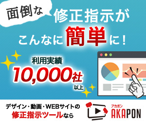 AKAPON(アカポン)は、デザイン・動画・WEBサイト制作における修正指示を、直感的かつ正確に伝えられるクラウド型ツールです。